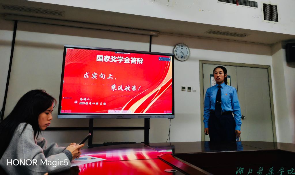 评审会上,来自校本部和药护学院的六名国家奖学金申请人展开激烈角逐,通过线上PPT集中展示,分别介绍了各自在学习成绩、科创竞赛、社会实践以及志愿服务等方面的优异表现。教师和学生评委详细查看申请人的基本信息,并认真听取他们的发言。最终经过评审小组深入讨论和民主投票等环节,确定2021级临床医学4班王艳和药护2023级临床医学4班管祺两位同学为国家奖学金获奖人选。