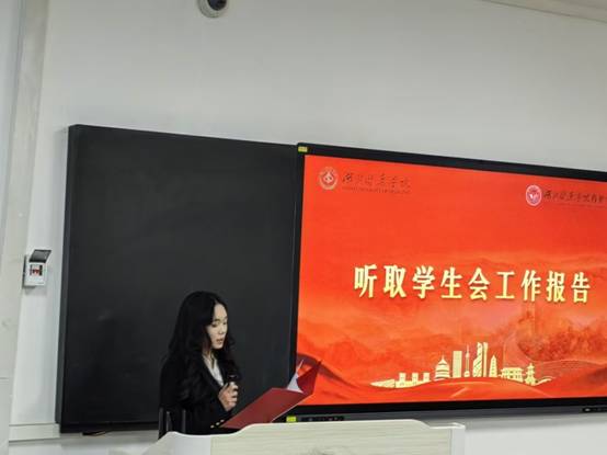 大会上,学生会第五届轮值主席团成员陈增作了工作报告,全面回顾了过去一年学生会组织的各项工作,从学术竞赛组织、社团活动开展,志愿服务推进到学风建设等方面,总结了经验与成果,也剖析了存在的问题与不足,并对未来学生会工作方向提出展望。