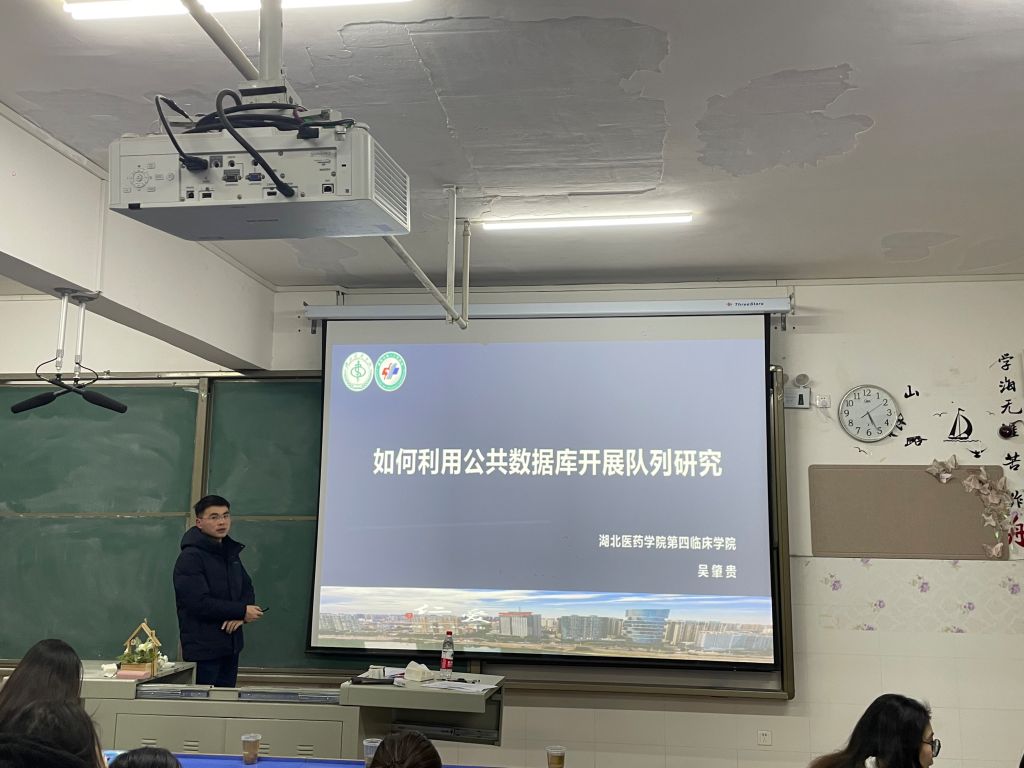 本网讯(通讯员 徐祥)1月7日下午,第四临床学院在襄阳校区康智楼301 教室举办了一场主题为“如何利用公共数据库开展队列研究”的科研讲座。此次讲座邀请附属襄阳市第一人民医院心内科吴肇贵博士主讲。第四临床学院硕士研究生及附属医院青年科研工作者参加。