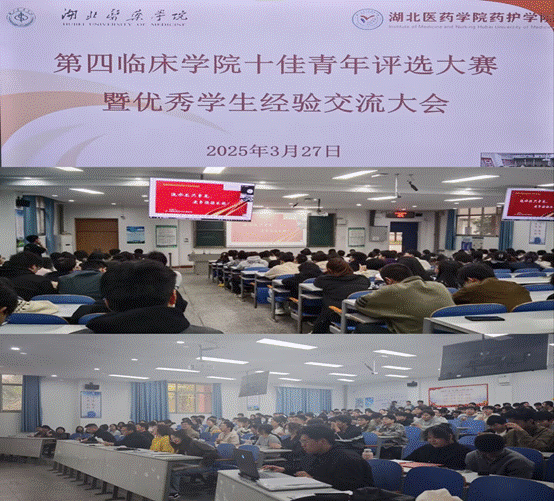 本网讯(通讯员 叶诗盈 朱德浩 陈文君)为了充分发挥朋辈引领的积极作用,着力营造崇学尚研的良好育人氛围,3月27日下午5点,第四临床学院2024年度“十佳青年” 评选暨优秀学生经验交流大会在十堰校区5111教室与襄阳校区康智楼304会议室同步开展。学院党委书记赵国新、党委副书记郑建超、教学办主任周静然、李玲及全体辅导员全程参与活动指导,2024级全体学生通过线上线下双通道观摩学习。