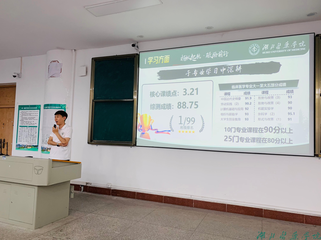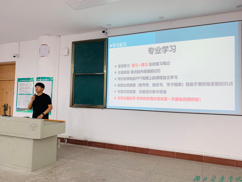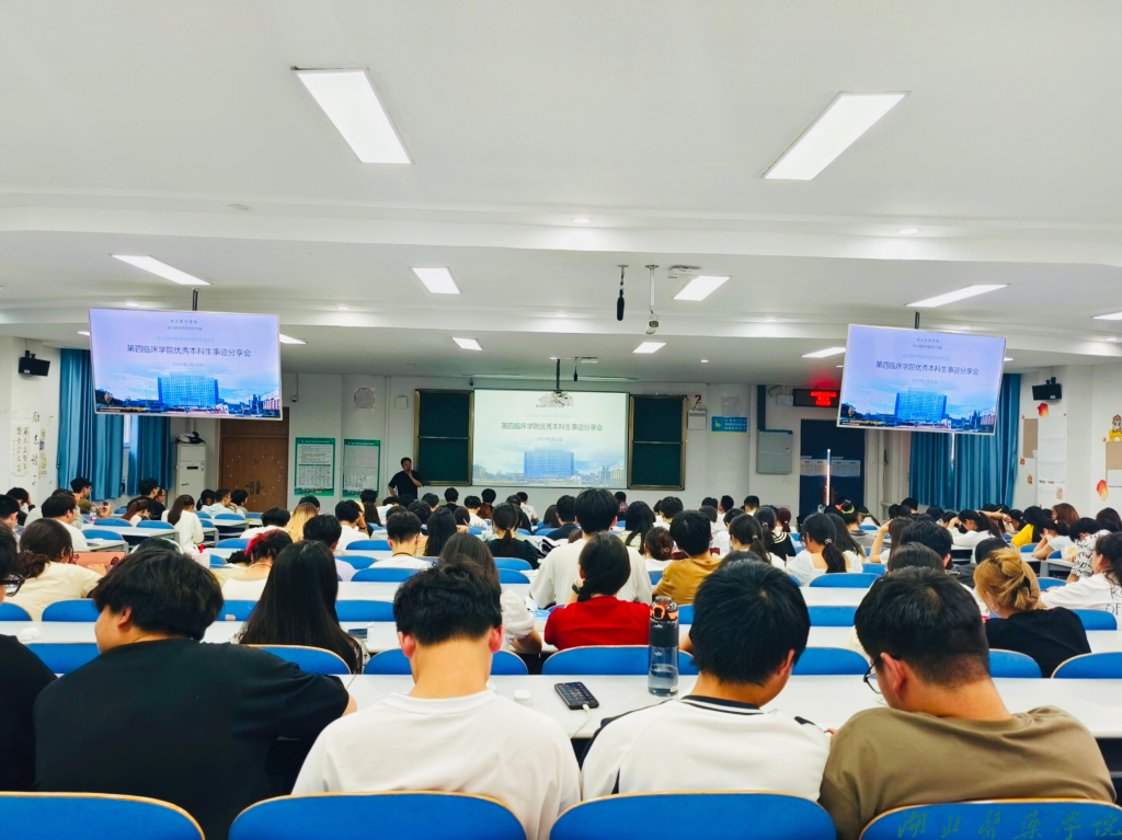 本网讯(通讯员 黄兆辉 郑美玲)5月16日下午,第四临床学院在5411教室举行优秀毕业生事迹分享会。学院2020级临床医学专业林之昊、熊浩、刘奥三位同学应邀为十堰校区240余名本科生作考研、科研、见习、实习、就业等方面经验分享交流。学院党委副书记郑建超、学工办主任龙月娇、辅导员黄兆辉参加本次活动。