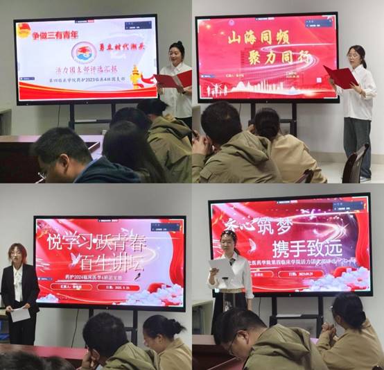 参加评选的药护23临本四班、23临本四班、药护24临本四班、24临本四班等4个团支部依次上台,围绕思想引领、组织建设、学风建设、社会实践与志愿服务等方面,全面而生动地展示了各自支部的特色、成果与青春风采。