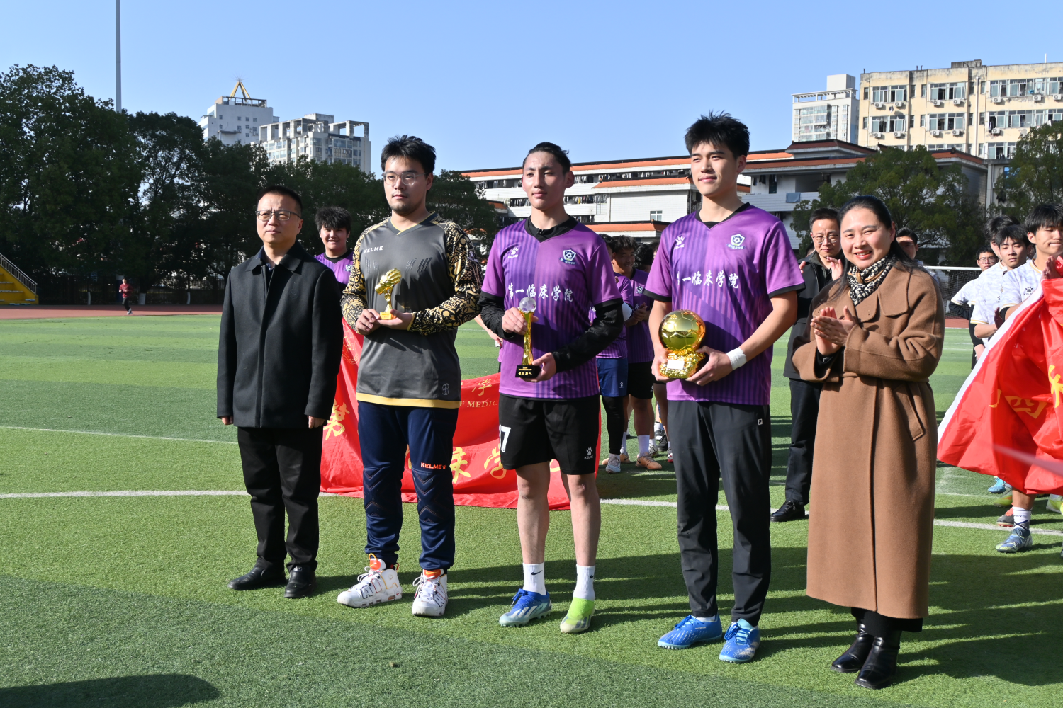 本网讯(通讯员 陈业史 许人卓)11 月 27 日下午,由校团委主办、第四临床学院、国际教育学院与校足球协会联合承办的湖北医药学院 2025 年金秋科技文化艺术节 “奋进杯” 足球赛颁奖仪式在田径场举行。校党委常委、宣传部部长陈建龙,相关学院负责人及全体获奖队员出席闭幕式。