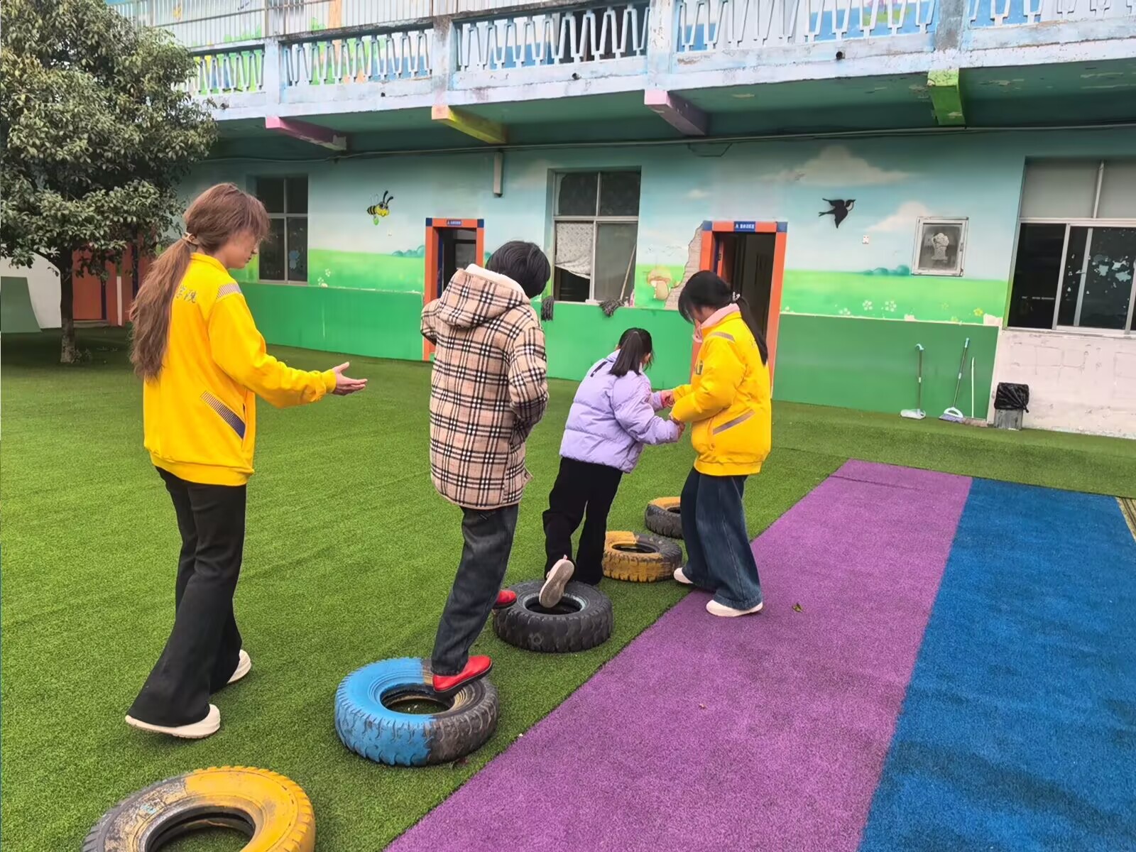 环境整理完毕后,志愿者们来到游乐区,陪伴孩子们体验游乐设施,与孩子们玩耍、互动,陪伴孩子们感受游戏的快乐。