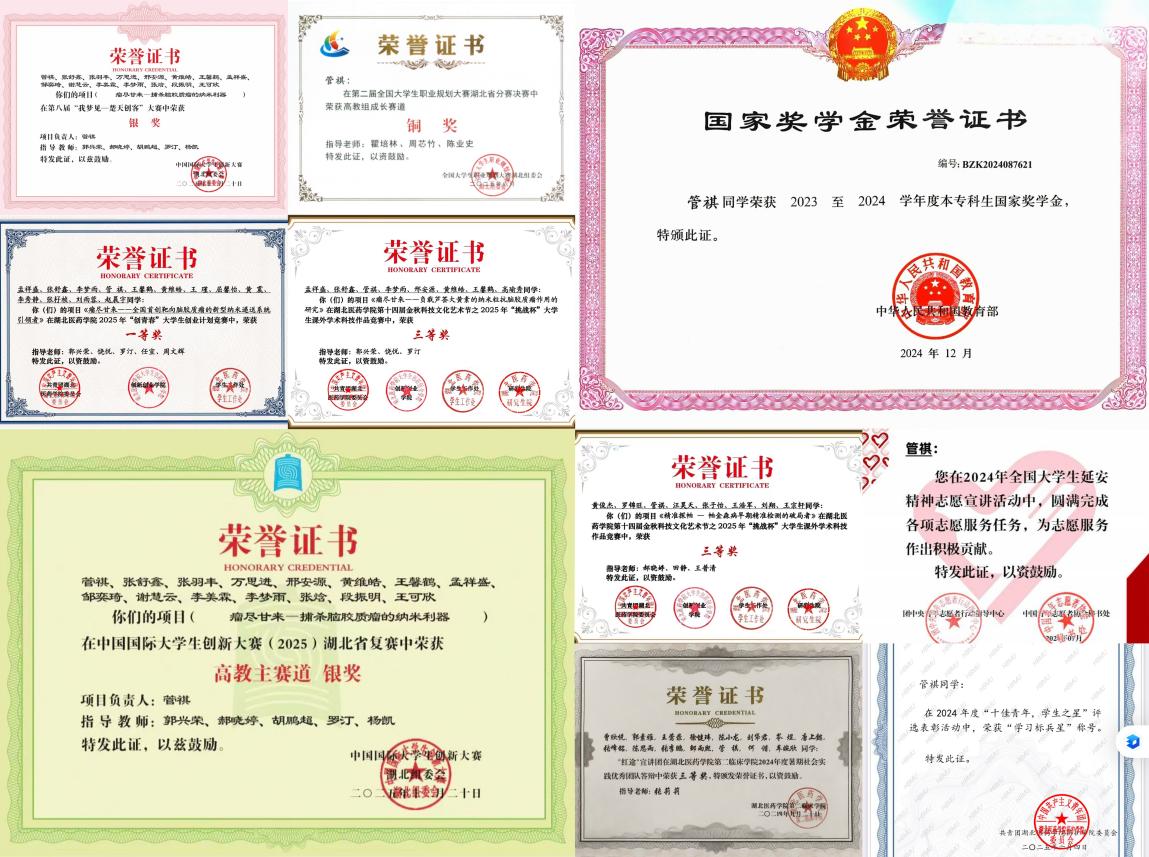 楚天创客银奖、职业规划铜奖等多项省级荣誉