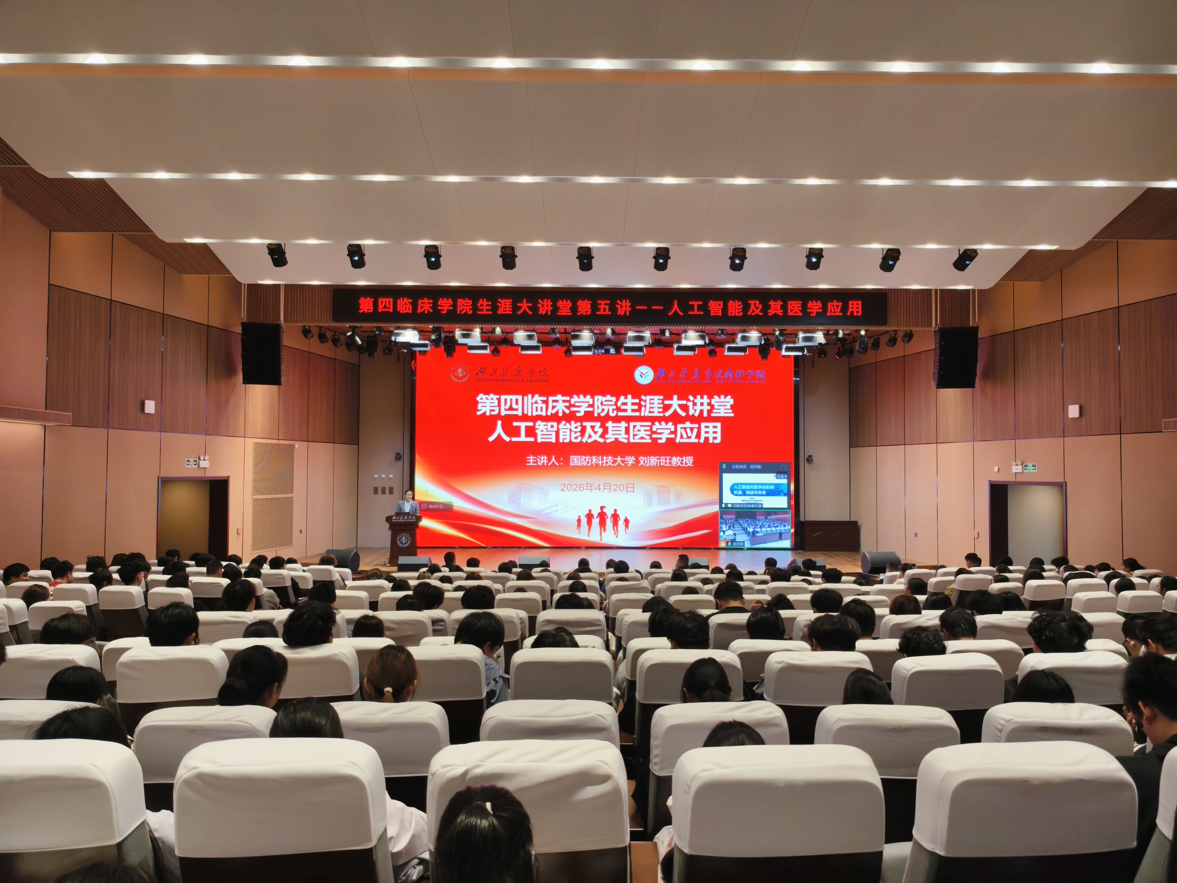 本网讯(通讯员 龙月娇)4月20日下午,第四临床学院在公卫大楼一楼报告厅成功举办第五期生涯大讲堂。活动特邀国防科技大学计算机学院刘新旺教授,带来《人工智能及其医学应用》专题线上讲座。本次讲座由校党委常委、副校长谭艳主持,十堰校区全体师生现场参会。